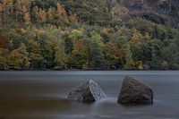 Een beeld van de "centenary stones" gelegen aan de oever van Derwent water, nabij het dorp Keswick in het Engelse Lake district. Door de lange sluitertijd heeft het water een rustige uitstraling, de herfstkleuren op de achtergrond maken dit beeld compleet.