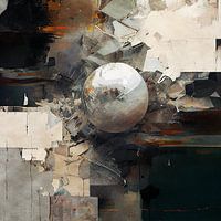 Impressionistisch gefragmenteerd tafereel met een grote gebroken bol.