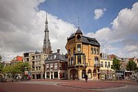 Stadsgezicht van de Friese plaats Leeuwarden met het karakteristieke Centraal Apotheek gebouw.