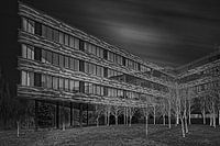 Het nieuwe CBS gebouw in Heerlen waar de kenmerkende witte bast van berken een mooi contrast opleveren met de strakke lijnen van dit moderne gebouw.