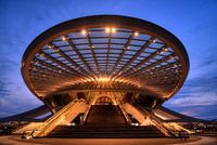 Koop de foto Centraal station Bergen België (Santiago Calatrava) in de avonduren van Watze D. de Haan op canvas, aluminium dibond, (ingelijste) fotoprint, behang en ArtFrame, op maat geprint in Fine-Art kwaliteit.