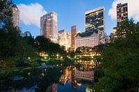 Central Park bij het vallen van de avond. Op deze foto kijk je uit over 'The Pond'.