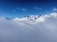 Boven de zee van wolken strekken de Zwitserse Alpen