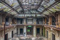 Een verlaten kasteel achtig gebouw met dit atrium eraan vast gebouwd. Het gebouw werd gebruikt als kantoor.