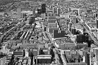 In het midden de Lijnbaanflats, rechts daarvan de lijnbaan en helemaal Rechts de Coolsingel.