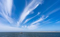 Zo ook op deze foto. Er was op dat moment een prachtige wolkenlucht met vederachtige wolken die uitwaaieren in de blauwe lucht. Het bootje in het water kwam ongeveer op het centrum uit waar de…