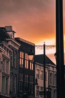 Het karakteristieke centrum van Den Bosch, vlakbij de Sint Jan. Tijdens zonsondergang, mooie oranje gloed tegen de oude gevels.