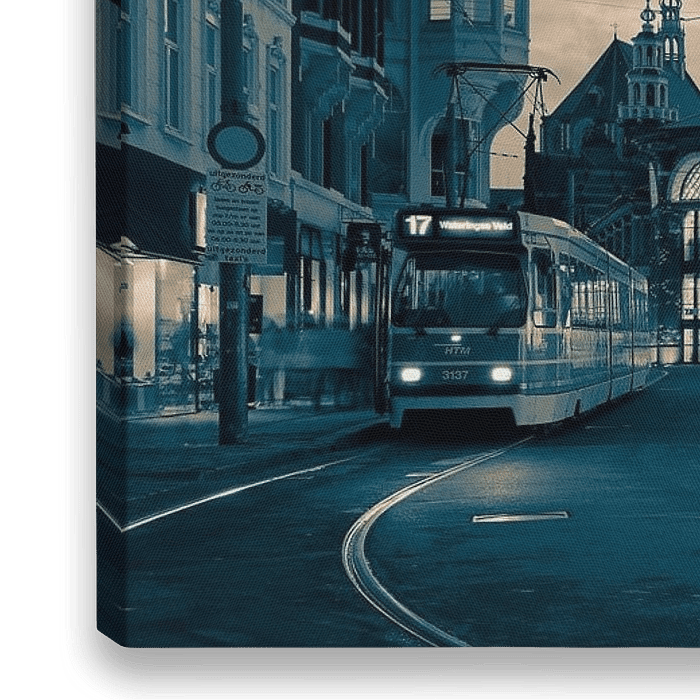 Koop de foto Centrum van Den Haag tijdens de schemering van Raoul Suermondt als print op canvas, aluminium dibond, (ingelijste) fotoprint, behang en ArtFrame. Voor jou op maat geprint in Fine-Art kwaliteit.