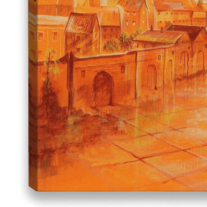 Het huidige schilderij toont een stad die doordrenkt is met een stralend geel licht, dat haar een aura-achtige, goddelijke sfeer geeft. De stad lijkt in een staat van verlossing, alsof het een voorproefje is van het hemelse paradijs of het hemelse Jeruzalem.