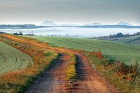 Het platteland van de Bourbonnais met op de achtergrond de "Chaîne des Puys", een keten van oude uitgedoofde vulkanen