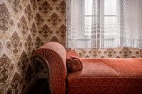 Een heel mooie chaise lounge, alleen achtergelaten in een verlaten huis.