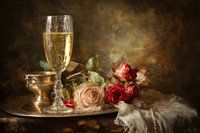 Koop dit bloemen kunstwerk Champagne en Rozen - Goud Romantisch Schilderij van Joriali Fine Art op canvas, aluminium dibond, (ingelijste) fotoprint, behang en ArtFrame, op maat geprint in Fine-Art kwaliteit.
