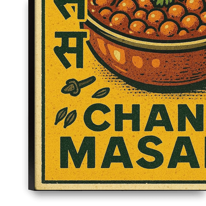 Koop de illustratie Chana Masala - Vintage Indiase Pop-Art Poster van Travel Shop op canvas, aluminium dibond, (ingelijste) fotoprint, behang en ArtFrame, op maat geprint in Fine-Art kwaliteit.