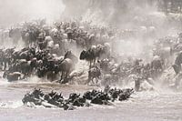 Op de rand van de Mara rivier zie je staan: duizenden Wildebeesten. Wachtend op hét 'perfecte' moment om de oversteek te maken. In de rivier krioelt het van de krokodillen, dus het is een beslissing op leven en dood. Zo gauw er één de sprong waagt volgt de kudde. De wildebeesten storten zich van de hoge oever naar beneden en willen allemaal tegelijk naar de overkant van de rivier. Sommigen worden vertrapt, anderen vallen ten prooi aan de krokodillen, jonge Wildebeesten verliezen het contact met hun moeder, en anderen vallen ten prooi aan leeuwen welke aan de andere kant van de rivier op de loer liggen ....... de chaos is compleet.