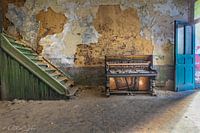 Een vervallen kantoor met een piano bij een verlaten kolenmijn.