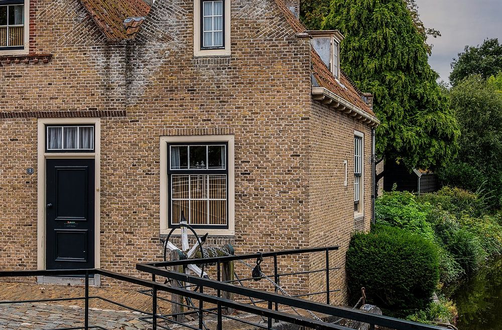 Langs de historische brug van Goedereede staat het brugwachtershuisje, oorspronkelijk uit de achttiende eeuw, met charmante zadeldaken en puntgevels versierd met subtiele vlechtingen. Vanuit dit perspectief komt de architectonische elegantie en symmetrie van het gebouw extra tot zijn recht.