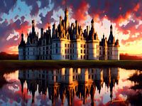 Koop dit digital art kunstwerk Chateau de Chambord, Loire-vallei, Frankrijk bij zonsondergang van Johannas Art Creations als reproductie op canvas, aluminium dibond, (ingelijste) fotoprint, behang en ArtFrame, op maat geprint in Fine-Art kwaliteit.