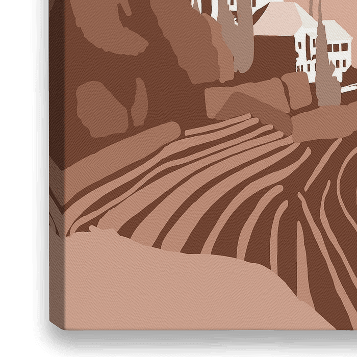 Op speciaal verzoek een meer rustieke versie van het felgekleurde schilderij "Chateau in Tirol" in deze shop. Een wijngaard in Tirol in Italië.