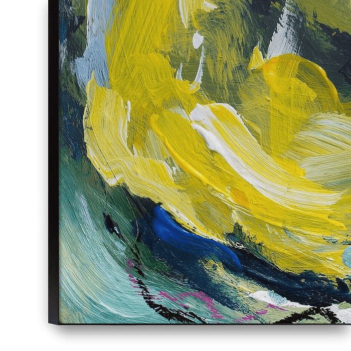 Koop dit bloemen kunstwerk Cheer up buttercup - kleurrijk abstract schilderij van QEIMOY als print op canvas, aluminium dibond, (ingelijste) fotoprint, behang en ArtFrame. Voor jou op maat geprint in Fine-Art kwaliteit.
