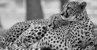 Cheetah houdt de wacht terwijl de andere heerlijk ligt (in zwart wit)