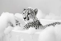 Deze originele badkamerfoto is een echte blikvanger! Met een vrolijk jachtluipaard dat geniet van de rust van zijn bad, brengt het charme en humor in elke moderne badkamer. De zwart-wit fotografie benadrukt de tijdloze elegantie, terwijl de scène zelf opvalt tussen de grappige badkamerfoto's. Dit werk is ideaal voor het ontwerp van een toilet of badkamer en herinnert eraan dat dieren ook toiletmomenten kunnen hebben. Deze moderne serie badkamerfoto's biedt een onconventionele decoratie die zowel een glimlach op je gezicht tovert als je badkamer verfraait. Met deze decoratieve badkamerafbeelding kun je een unieke sfeer creëren en inspirerende interieurideeën vinden voor je toilet.