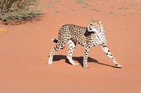 Achterom kijkende Cheetah in de Kalahari woestijn , Namibie