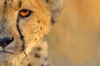 Cheetah, half in beeld en starend.