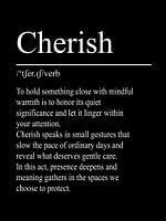 Koop de illustratie Cherish Definitie - Zwart van WordsThatInspire als print op canvas, aluminium dibond, (ingelijste) fotoprint, behang en ArtFrame. Voor jou op maat geprint in Fine-Art kwaliteit.