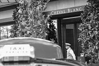 Hotel le Cheval Blanc in Parijs met de portier en de taxi. Foto door Tom Vandenhende, fotograaf in Saint-Tropez.