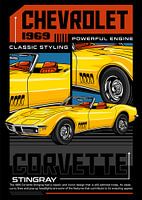 Koop dit Popart kunstwerk Chevrolet Corvette Stingray ZL1 1969 Auto van Adam Khabibi op canvas, aluminium dibond, (ingelijste) fotoprint, behang en ArtFrame, op maat geprint in Fine-Art kwaliteit.