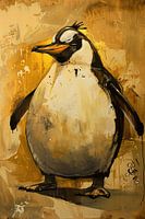 Details: pinguïn, goud, zwart, wit, schilderij, dieren, kunst, modern, humor, trendy