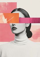 Deze minimalistische lijnkunstcollage toont een elegante vrouw die een witte coltrui draagt. Ze staat in een fashionista pose, met zelfvertrouwen en stijl. De achtergrond is verrijkt met subtiele mauve accenten die een warme en uitnodigende sfeer creëren. Rondom haar bevindt zich een levendige kleurenachtergrond die de aandacht trekt en de algehele compositie versterkt. De strakke lijnen en eenvoudige vormen van de collage geven het geheel een moderne en verfijnde uitstraling, perfect voor liefhebbers van hedendaagse kunst en mode. Deze combinatie van elementen zorgt voor een visueel aantrekkelijke en harmonieuze presentatie, die de elegantie en creativiteit van de vrouw in de spotlights zet.