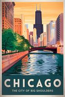 Met zijn imposante wolkenkrabbers en de schilderachtige rivier die door het hart van de stad stroomt, straalt dit kunstwerk de energie en het karakter van Chicago uit. De warme kleurtinten en het moderne ontwerp maken het een perfecte blikvanger voor de woonkamer, waar het inspiratie en gespreksstof biedt.
