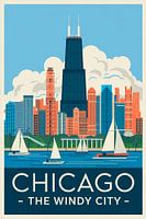 De zilveren wolkenkrabbers rijzen majestueus boven het glinsterende water uit, terwijl zeilboten zachtjes door de golven glijden. Het levendige kleurenpalet en de nostalgische charme geven de kamer een dynamische sfeer. Dit kunstwerk is perfect voor een moderne woonkamer of een creatief kantoor, waar het kan inspireren en aanzetten tot dagdromen.