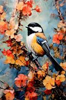 Koop dit bloemen kunstwerk Chickadee vogel schilderij kleuren kunst #Chickadee van JBJart Justyna Jaszke op canvas, aluminium dibond, (ingelijste) fotoprint, behang en ArtFrame, op maat geprint in Fine-Art kwaliteit.