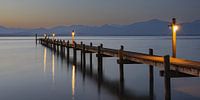 Kort voor zonsopgang ligt er een magische stilte over de Malerwinkel aan de Chiemsee. De nacht bedekt het landschap nog voorzichtig in een deken van blauw en grijs, terwijl het eerste daglicht aan de horizon fluistert: "Ik kom eraan."