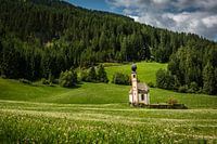 Landschapsfoto van de kleine schattig kerk, Chieseta di San Giovanni in Ranui, Italy in de Dolomieten