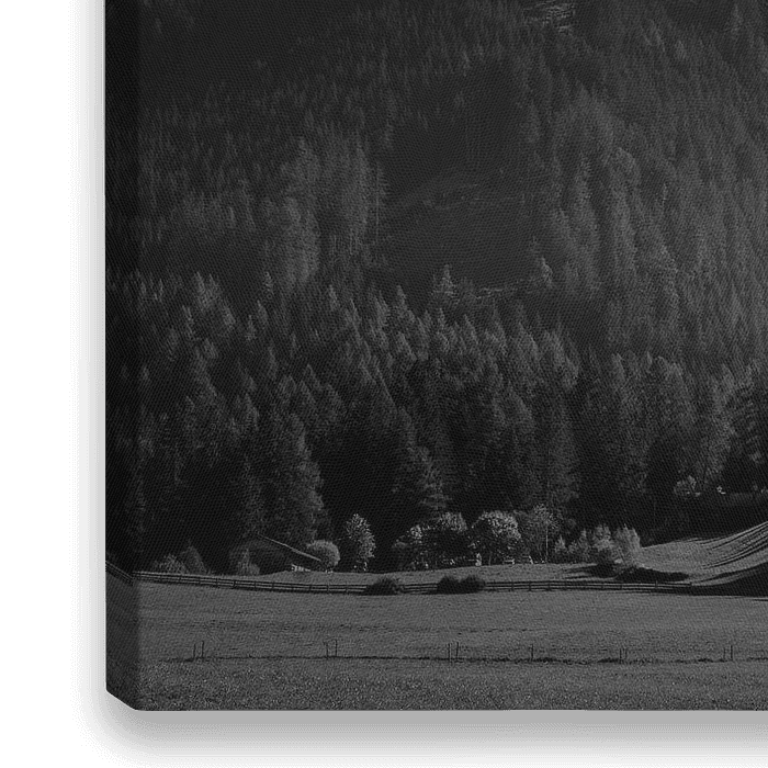 De witte kapel steekt mooi af tegen de donkere atmosfeer in deze zwartwit opname.