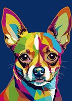Dit kunstwerk verhoogt de diva-achtige aanwezigheid van de Chihuahua met een opvallend palet van rijke paars, levendige roodtinten en ijzige blauwtinten. De zelfverzekerde houding, geaccentueerd met gestileerde texturen en pop-art flair, maakt het een statement voor chique woonruimtes, waarbij de charme van een kleine hond wordt gecombineerd met gedurfd, modern design.