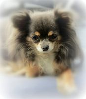 Chihuahua Portrait is een mooie zachte fotobewerking van een langharig chihuahua hondje.