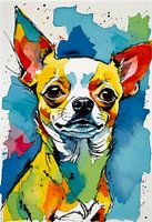 Een chihuahua aquarel schilderij vangt de karakteristieke kenmerken van de kleine hond's grote, expressieve ogen, parmantige oren en een delicate, maar levendige vacht. De zachte, vloeiende penseelstreken creëren een grillig, speels effect en benadrukken de kleine maar zelfverzekerde persoonlijkheid van de hond. Zachte kleurspoelingen benadrukken zijn vertederende kwaliteiten, waardoor de chihuahua op een charmante en artistieke manier tot leven komt.