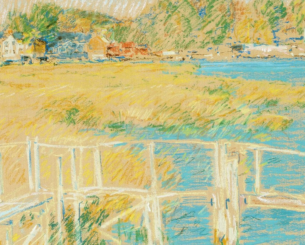 Over "Childe Hassam,De rivier op, laat in de middag, oktober"