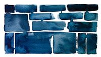 'Chill Vibes | 01' is een aquarel schilderij in een moderne abstracte stijl met frisse indigo /blauwe kleurtinten.