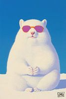 Chill Zone Vibes - Dit dieren schilderij toont een pluizige, witte hamster met een zonnebril, zittend tegen een intens blauwe hemel, wat een grappig en relaxed beeld creëert.