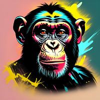 'Chille Chimpansee' is niet alleen een kleurrijk apenportret, maar ook een viering van ontspanning en levensvreugde. Het kunstwerk nodigt de kijker uit om de positieve energie van de chimpansee te omarmen en te genieten van het moment van chillen.