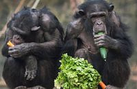 Chimpansees eten groenten. Chimpanzees eat vegetable.