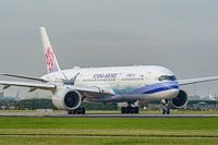 Deze China Airlines Airbus A350-900 draait de Aalsmeerbaan op om even later op te stijgen voor de vlucht naar Taipei.