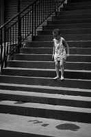Koop de foto Chinees jongetje springt van trap van André van Bel op canvas, aluminium dibond, (ingelijste) fotoprint, behang en ArtFrame, op maat geprint in Fine-Art kwaliteit.