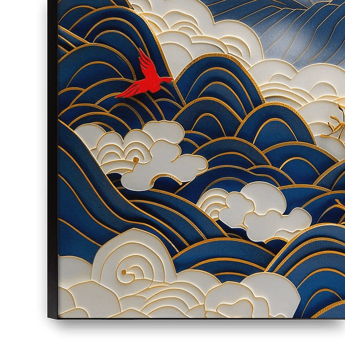 Koop dit landschapskunstwerk Chinees landschap in blauw van haroulita op canvas, aluminium dibond, (ingelijste) fotoprint, behang en ArtFrame, op maat geprint in Fine-Art kwaliteit.