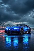 Snelheid ontmoet sereniteit. Deze Bugatti Chiron glijdt door een zonovergoten bosweg. De bewegingsonscherpte en het gouden uur-licht vangen perfect de harmonie tussen techniek van wereldklasse en de schoonheid van een snelle rit.